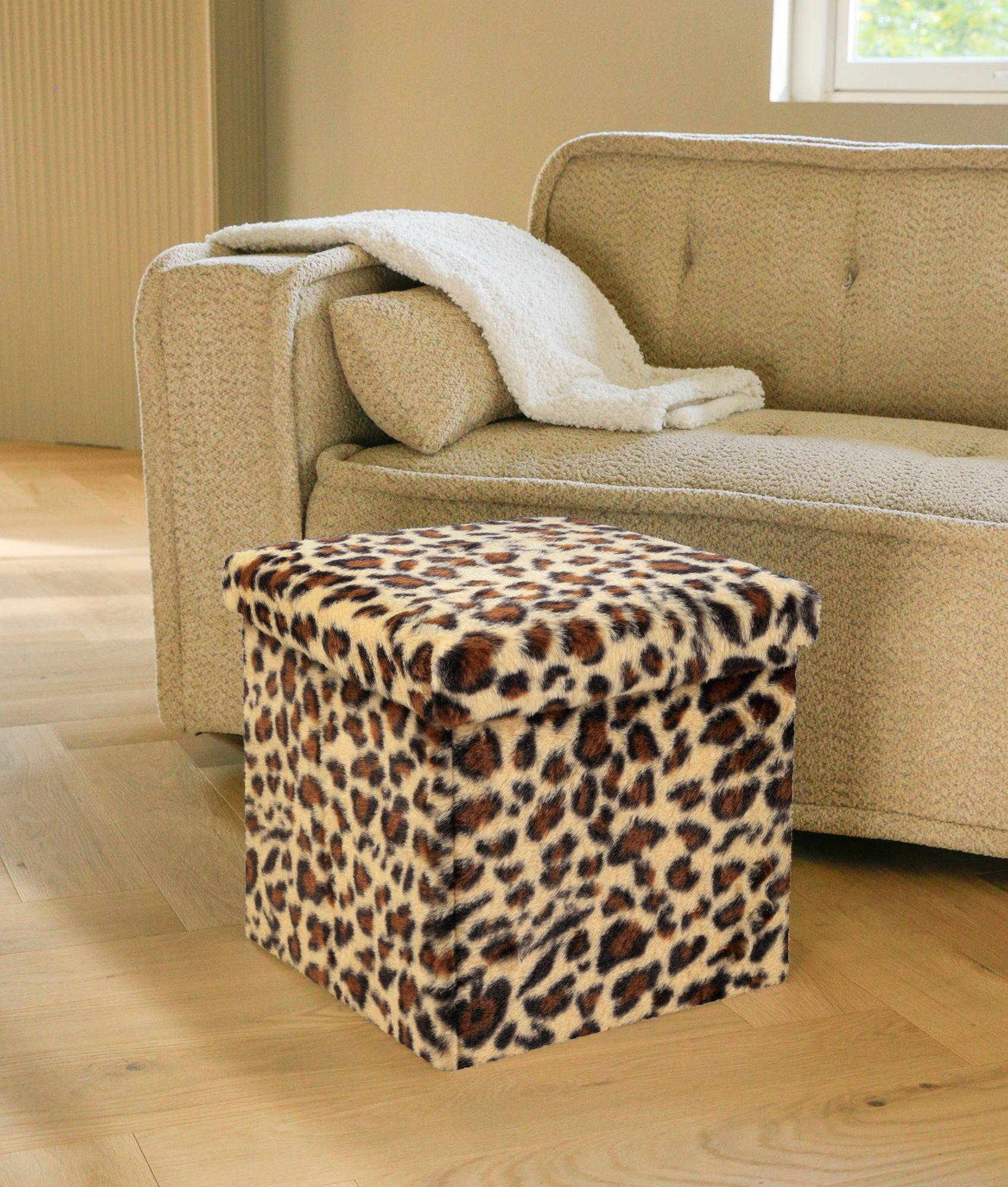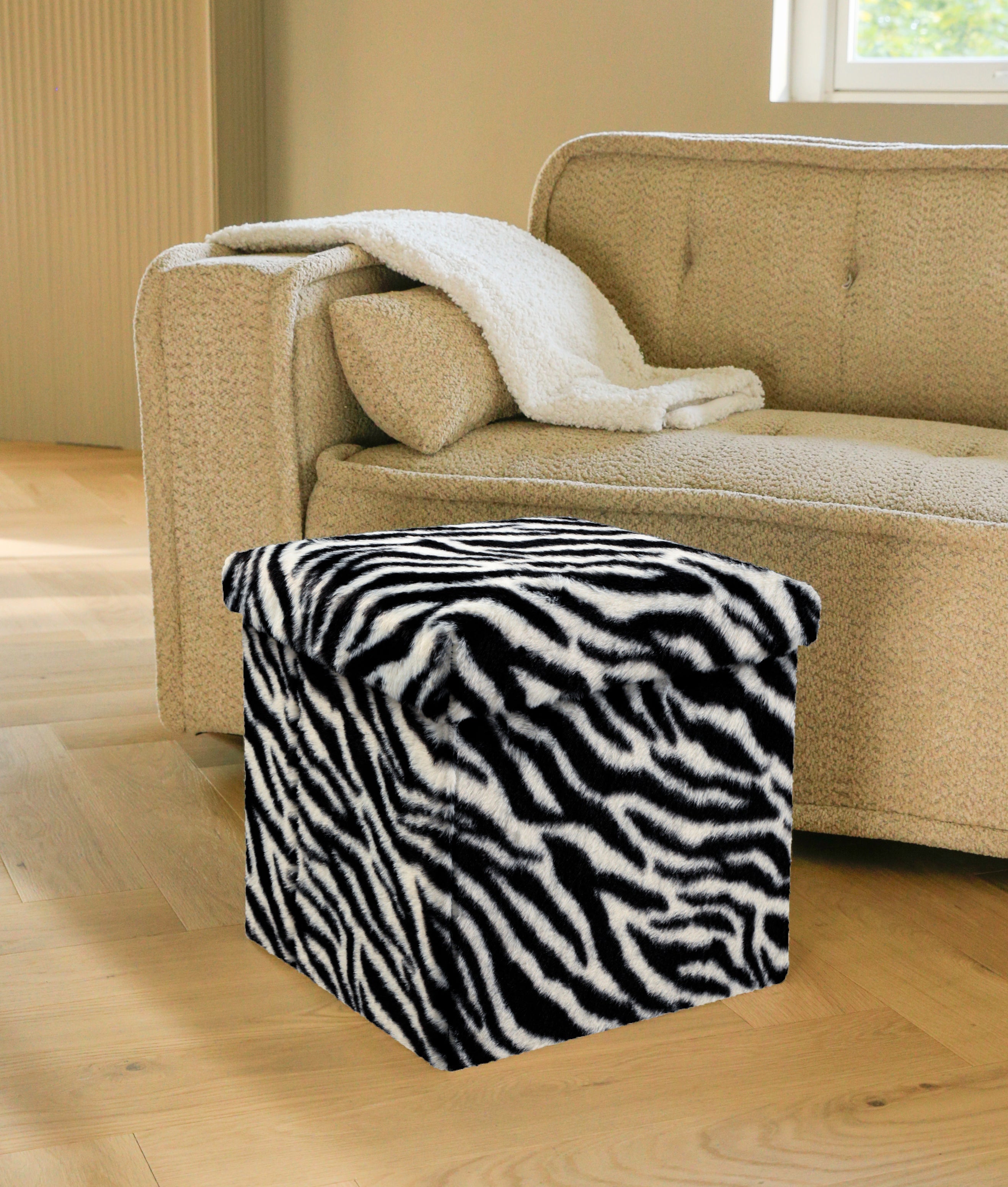The Go-Poufs Knock-Down Medium Cube Storage Ottoman combines comfort and functionality. At 15"x15"x15", this ottoman offers a cozy spot to rest your feet while providing convenient storage. The teddy boucle fabric brings a soft, textured look that complements neutral or rustic decor. Ideal for bedrooms, living rooms, or nurseries, this ottoman is as practical as it is stylish.