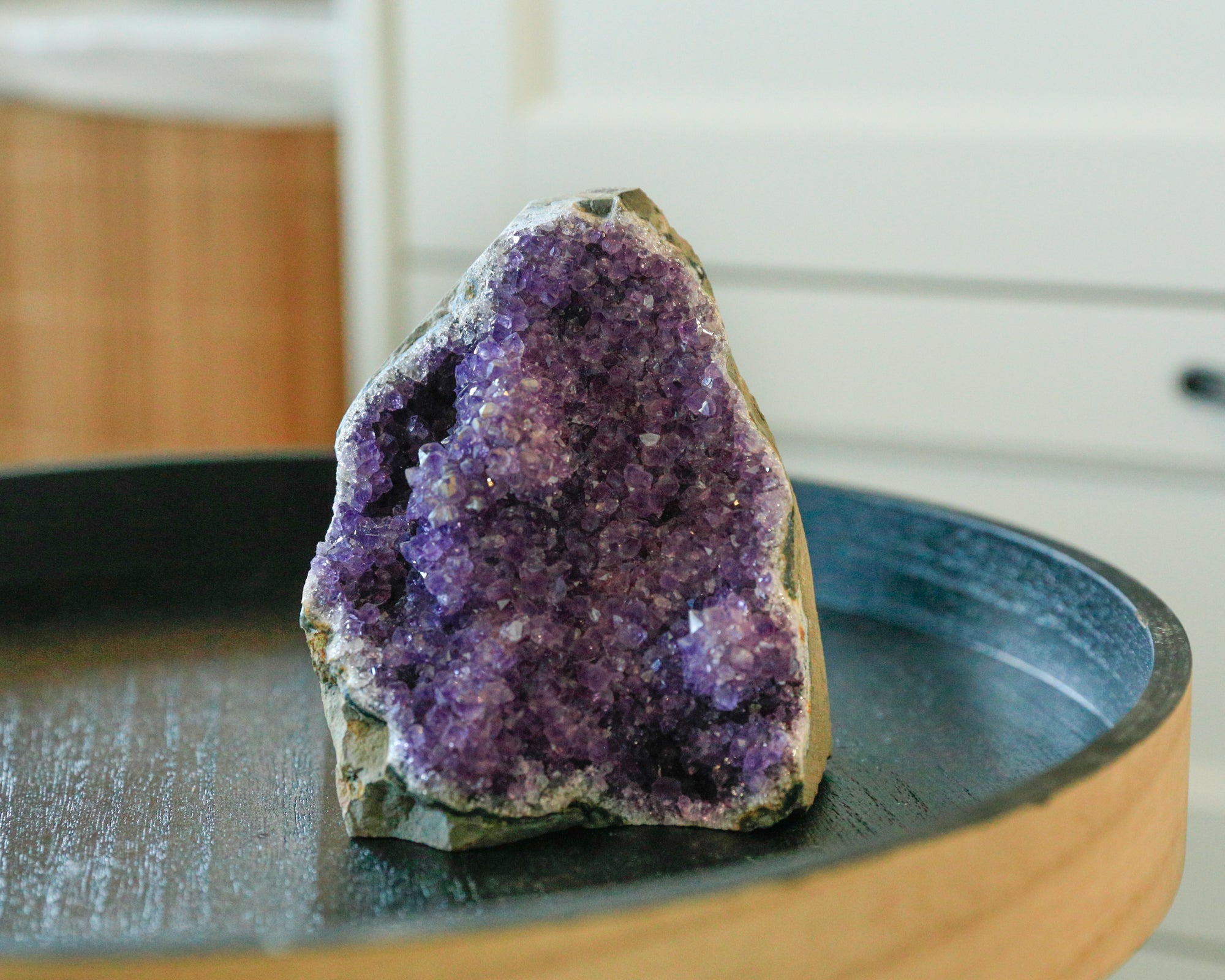 Sublimez votre intérieur avec les améthystes Eternity à large base taillée d'un violet profond. Réputée pour ses vertus apaisantes et calmantes, l'améthyste est une pierre précieuse d'une beauté exceptionnelle qui apporte harmonie et équilibre à toute pièce. Chaque pièce est taillée avec soin pour révéler toute sa splendeur naturelle, ce qui en fait un centre de table exquis ou un élément décoratif idéal pour un espace de méditation, un bureau ou une table d'appoint. Parfait pour celles et ceux qui recherchent une décoration alliant élégance et sérénité.